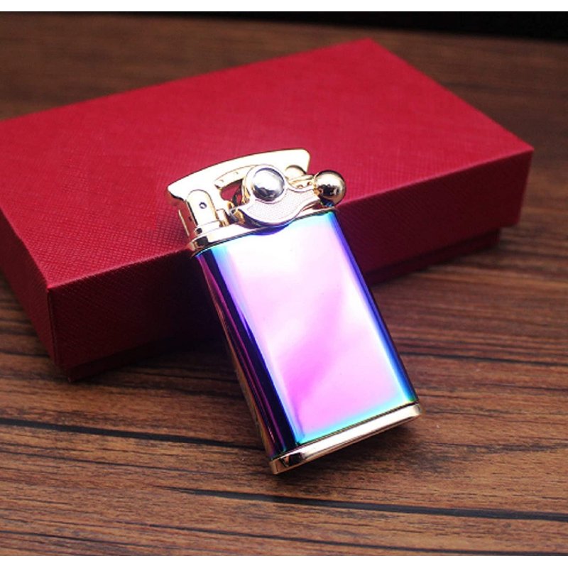 High quality material: This Jet Torch Cigar lighter is made by zinc alloy. The mirror surface process adopts PVD dip dyeing technology, make its surface more smooth. Innovative ignition mode: This vintage Cigar Lighter build with rocker arm design, push down automatic rebound ignition. Different with the traditional button press ignition method. Not only has the high ignition rate, but also not hurt your hand. Flame Adjustable& Butane Refillable: The blue flame can be easily adjusted through the dial below. Universal refill valve for easy butane refill. Butane is NOT included due to airmail regulation. Strong Flame Burner: Powerful blue Flame Cigarette Lighter with copper outlet valve, high temperature resistant ceramic process. Use less fuel and gives more heat than normal torch lighter. Windproof and easily handle any breeze. Dimension: 2.5" x 1.37" x 0.47" Inches Net Weight: 2.6 oz.