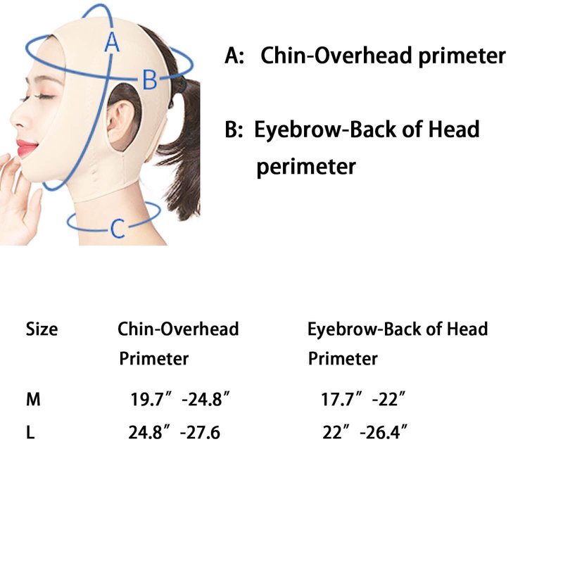 M: chin-overhead primeter 19.7”-24.8”,eyebrow-back of head perimeter 17.7”-22”