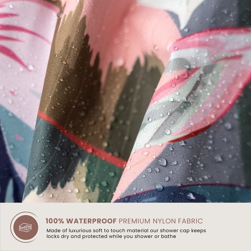 Reusable Shower Cap for Women – Leakproof, Nonslip Hair Cap for Shower w/Comfy Flexiband – Soft, Breathable Shower Caps for Women Reusable Waterproof – Durable Shower Cap by SMPL OBJECTS (Tropical)