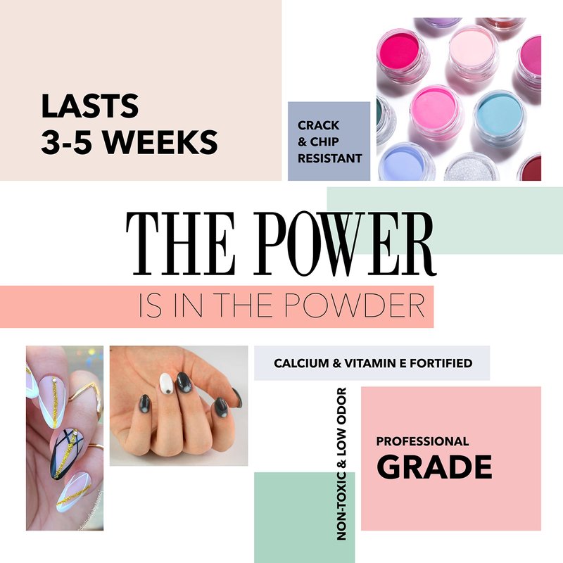 - PROFESSIONAL QUALITY: Easy to use super fine dip powder is infused with Calcium and Vitamin E to provide the premium quality that lays smooth with maximum shine. With a wide range of colors you can create any nail art or design. Perfect for every occasion!