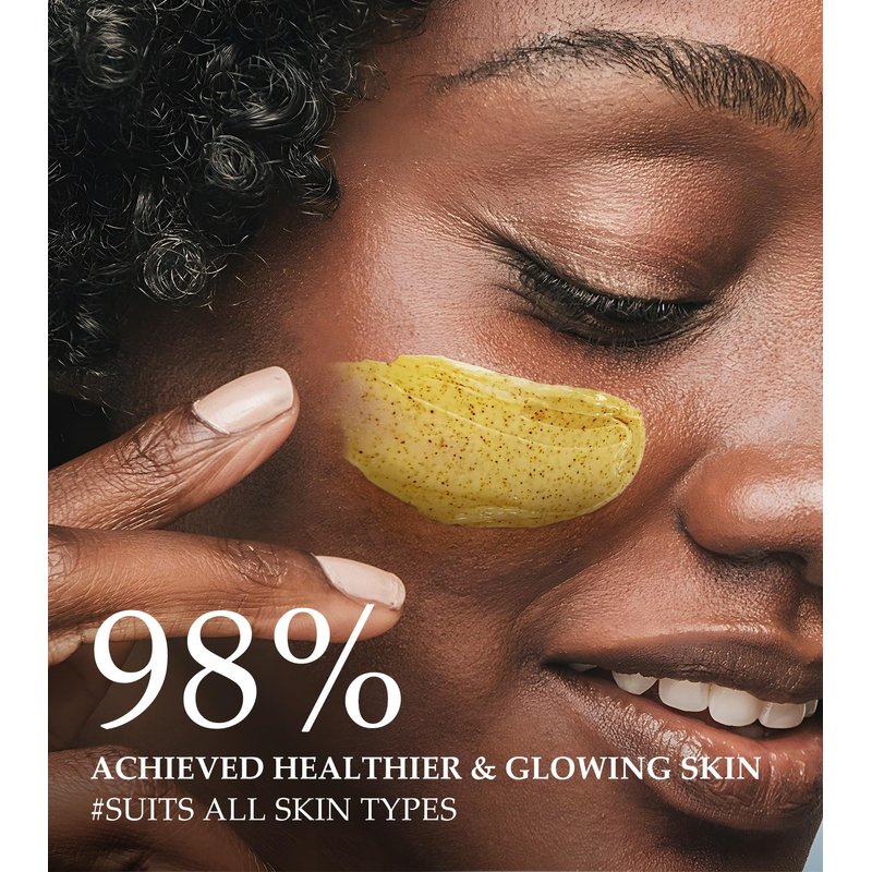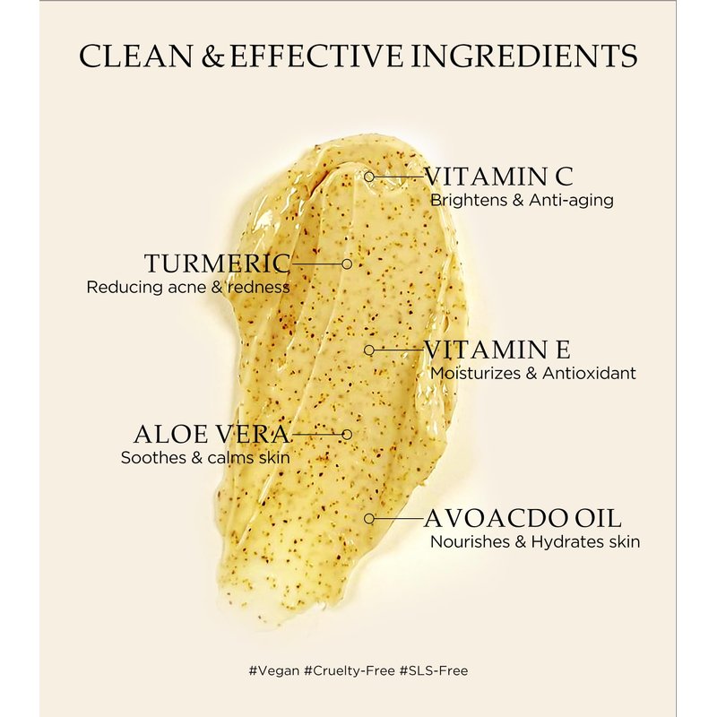 - 𝐁𝐑𝐈𝐆𝐇𝐓𝐄𝐍 & 𝐑𝐄𝐕𝐈𝐕𝐄—𝐔𝐍𝐋𝐎𝐂𝐊 𝐘𝐎𝐔𝐑 𝐒𝐊𝐈𝐍'𝐒 𝐓𝐑𝐔𝐄 𝐆𝐋𝐎𝐖! Infused with powerful antioxidants—Vitamin C and Turmeric—this facial exfoliator works as a brightening agent to even out your skin tone and fade dark spots. Vitamin C stimulates collagen production and brightens dull skin, while turmeric's natural healing properties gently balance your complexion. Whether you're tackling pigmentation or just looking for a fresh boost, this scrub will leave your skin visibly brighter and smoother with every use.