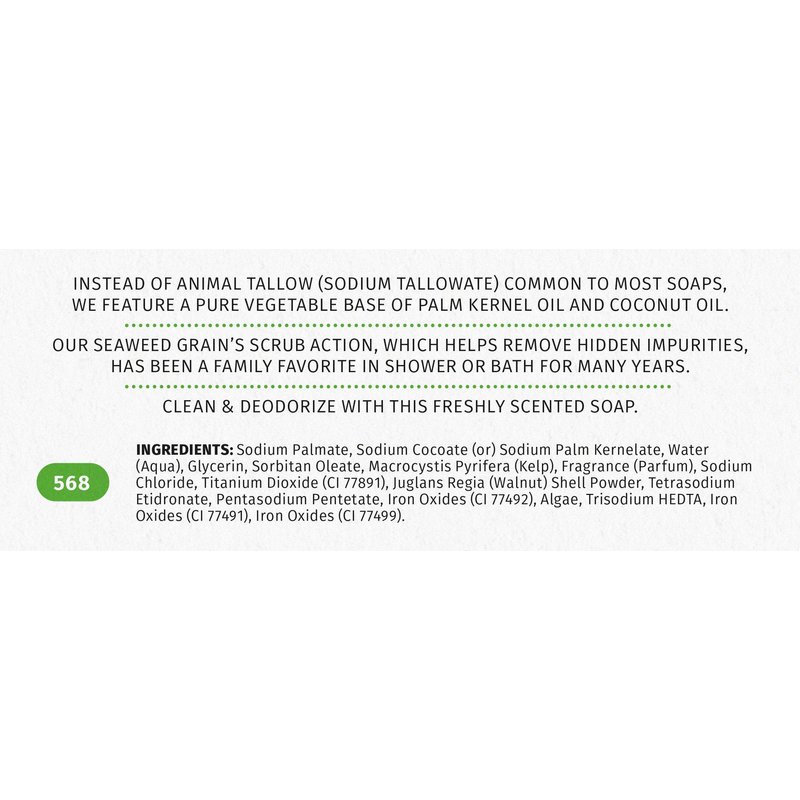 - All Natural Bar Soap for the Whole Family - Lightly scented with extra scrub action, our sea weed bath soap is great for men, women, and children. Can be used as seaweed body scrub, facial wash, or everyday hand soap.