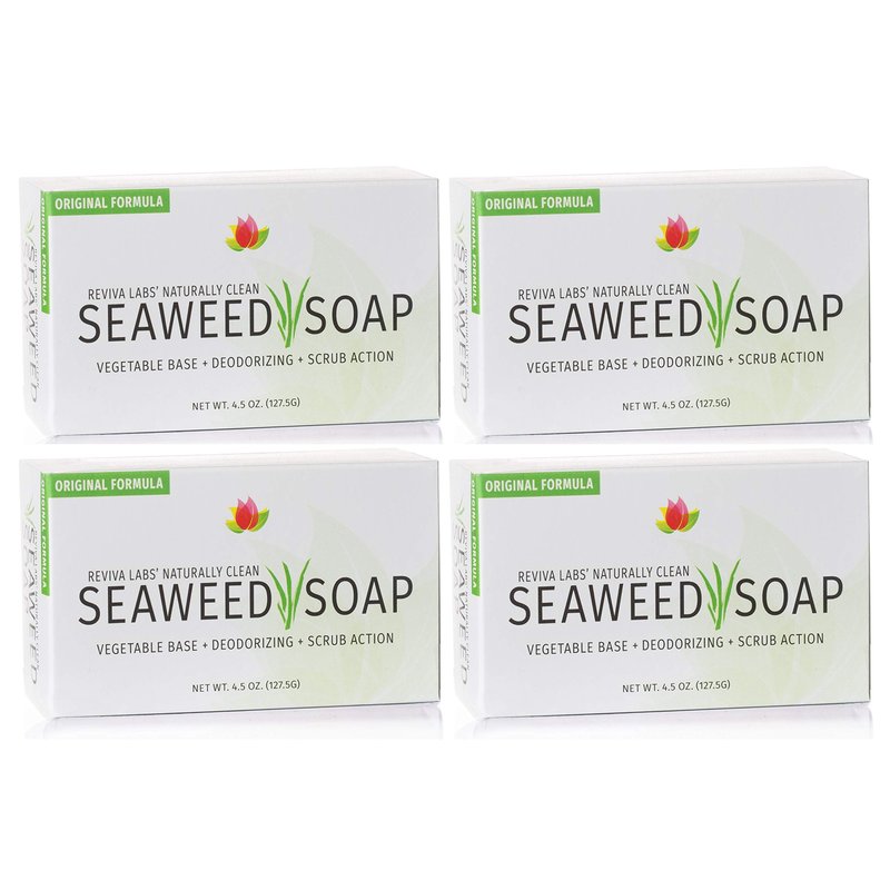 Reviva Seaweed Soap - 4 Pack - Organic Seaweed Face Scrub and Exfoliating Body Scrub Soap Bar - 4.5 oz. Vegetable Base Natural Bar Soap and Seaweed Bath Detox Soap Made in the USA