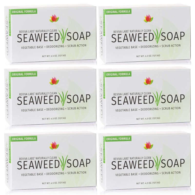 Reviva Seaweed Soap - 6 Pack - Organic Seaweed Face Scrub and Exfoliating Body Scrub Soap Bar - 4.5 oz. Vegetable Base Natural Bar Soap and Seaweed Bath Detox Soap Made in the USA