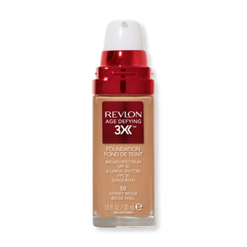 Revlon Liquid Foundation, Age Defying 3XFace Makeup, Anti-Aging and Firming Formula, SPF 30, Longwear Medium Buildable Coverage with Natural Finish, 050 Honey Beige, 1 Fl Oz