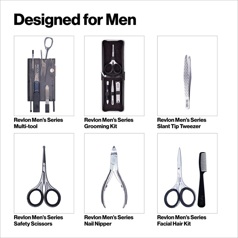 Revlon Men's Grooming Kit, Nail Clipper, Safety Grooming Scissors, Nail File & Tweezers, High Precision Hair Removal Tools, Stainless Steel (Pack of 1)