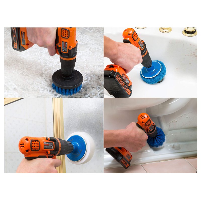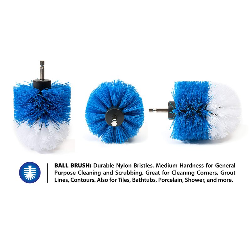 - Clean Any Surface: The drill brushes are perfect for grout lines, corners, tiles, tubs, showers, carpets, siding, linoleum, stoves, counters, fiberglass, grills, marble, and more