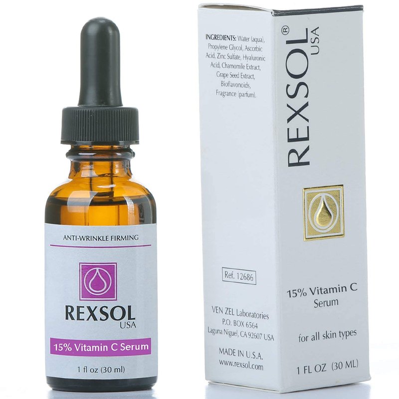 An advanced vitamin C serum contains 15% stabilized L-Ascorbic Acid. Reduces the appearance of fine lines and wrinkle, age spots and sagging skin, improves tone and elasticity for a more youthful texture. For all skin types. Smoothes out features, softens fine lines Improving skin texture and refines facial contours Effectively minimizes the appearance of fine line Enhances skin's youthful appearance in within a week. Unlock the secret to youthful, radiant skin with REXSOL 15% Vitamin C Serum. Formulated with a potent blend of natural antioxidants and skin-loving ingredients, this serum is your key to firmer, smoother, and more youthful-looking skin. Key Features: High Potency Vitamin C: Our serum contains 15% Vitamin C, a powerful antioxidant that helps reduce the appearance of fine lines and wrinkles while promoting a firmer, more youthful complexion. Natural Antioxidant Blend: Infused with Hyaluronic Acid, Chamomile, and Grape Seed Extract, this formula nourishes and protects the skin from environmental damage, leaving it looking radiant and revitalized. Firming and Youthful Formula: Say goodbye to sagging skin and hello to a firmer, more youthful appearance. REXSOL Vitamin C Serum helps improve skin elasticity, resulting in a smoother, more lifted complexion. Hydrating and Soothing: Hyaluronic Acid and Chamomile work together to provide deep hydration and soothe the skin, reducing redness and irritation for a calm, balanced complexion.