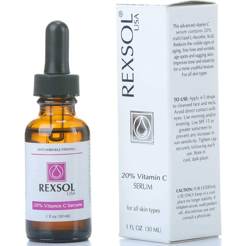 REXSOL 20% Vitamin C Serum Anti-wrinkle Firming | With Hyaluronic acid | Dark Circle & Sun Damage Corrector | Effectively minimizes the appearance of fine lines, wrinkle & age spots.(30 ml/1 fl oz)