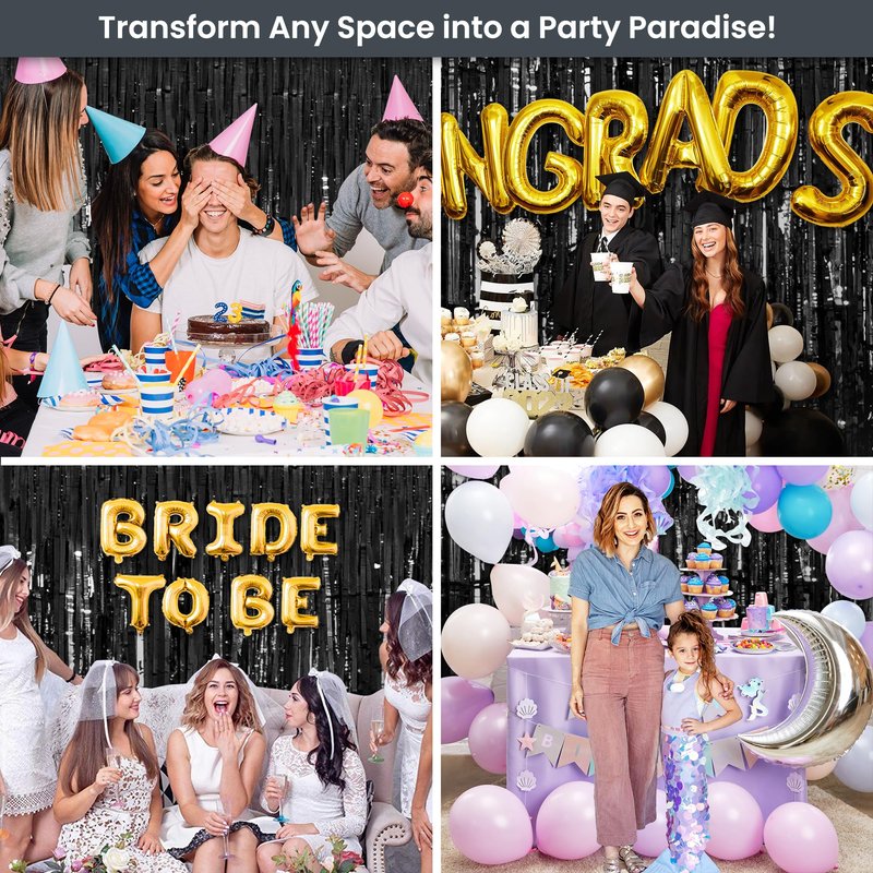 - ✅ High-Quality Black Fringe Curtain: Crafted with precision, our tinsel curtain backdrop promises not only a dazzling display but also a long-lasting decoration. Whether you're hosting a silver party decorations birthday bash or a festive gathering, these fringe curtains party decorations will elevate the ambiance and leave your guests in awe