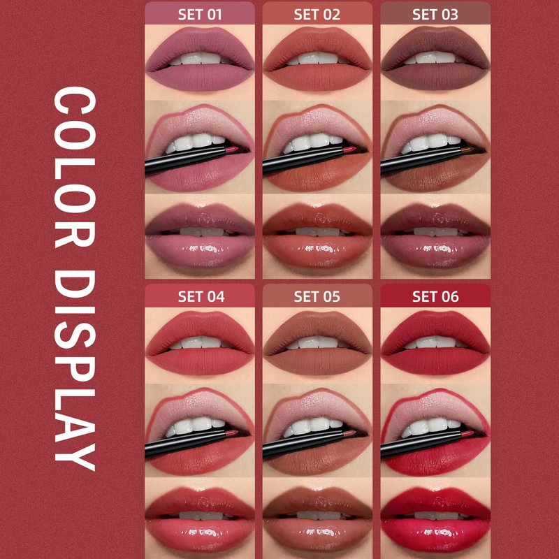 Our three-in-one lipstick set includes matte lip gloss, moisturizing lip gloss, and 2mm lip liner, making it a high-performance, multi-functional cosmetic product. The matte lip gloss provides a soft matte effect that stays all day, perfect for daily work and social occasions. The moisturizing lip gloss adds moisturizing ingredients to the matte foundation, keeping your lips hydrated and glossy, suitable for special occasions and dry seasons. The 2mm lip liner enables precise application and definition, ensuring you have perfect lip shape every time. The set includes three beautiful shades that are suitable for any skin tone. This set is a must-have for any makeup enthusiast, helping you create perfect lips for both daily makeup and special occasions. Come and give it a try!
