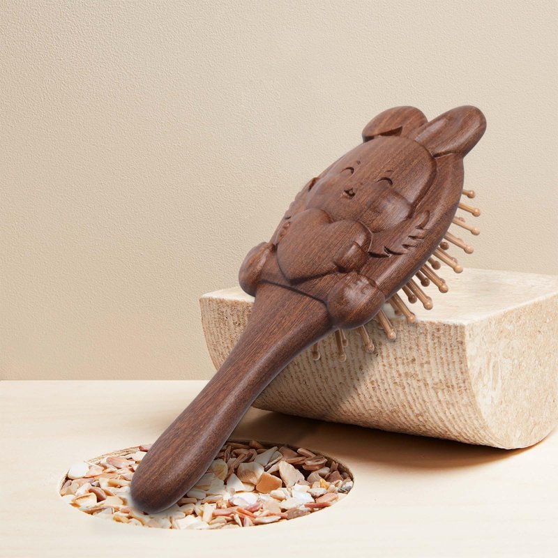 - [Black Golden Sandalwood Material] This cute animal shaped air cushion Comb made of durable black golden sandalwood. It is barrier free, static free, and non frizzy, reducing hair breakage and bifurcation. Handmade techniques make your hair smooth and care for, without scratches, simple and elegant. They have beneficial effects, emit a faint wooden sandalwood flavor, and can be used for a long time.