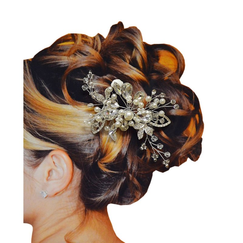 - Rhinestone Leaf & Flower Pearl Bead Hair Comb