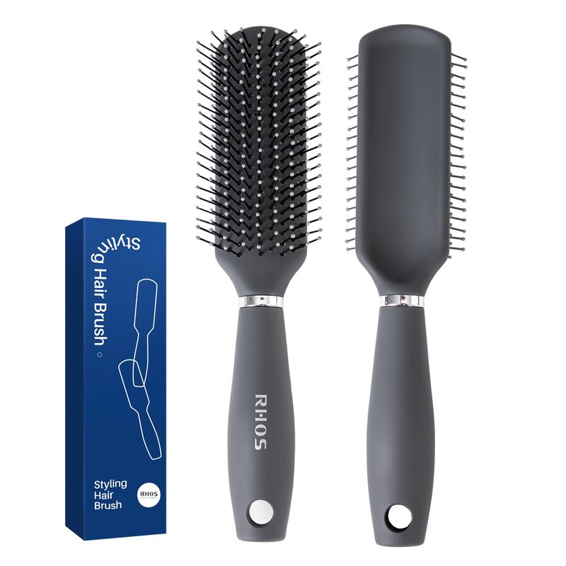 RHOS Hair Brush for Men - Detangler Hair Brush for Styling/Massage - Nylon Bristles for Wet & Dry Hair, Bangs, Thin, Short Hair - Gray
