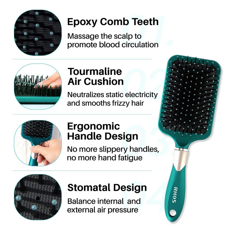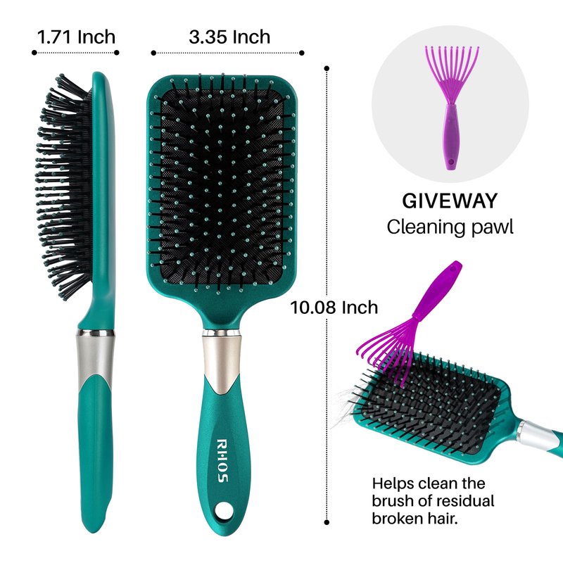 - 【High Quality】RHOS paddle brush is made of ABS material,sturdy and lightweight.The handle is ergonomically designed to fit perfectly in the palm of your hand,it is not easy to slip when brushing,and the frosted surface is designed for a comfortable grip.