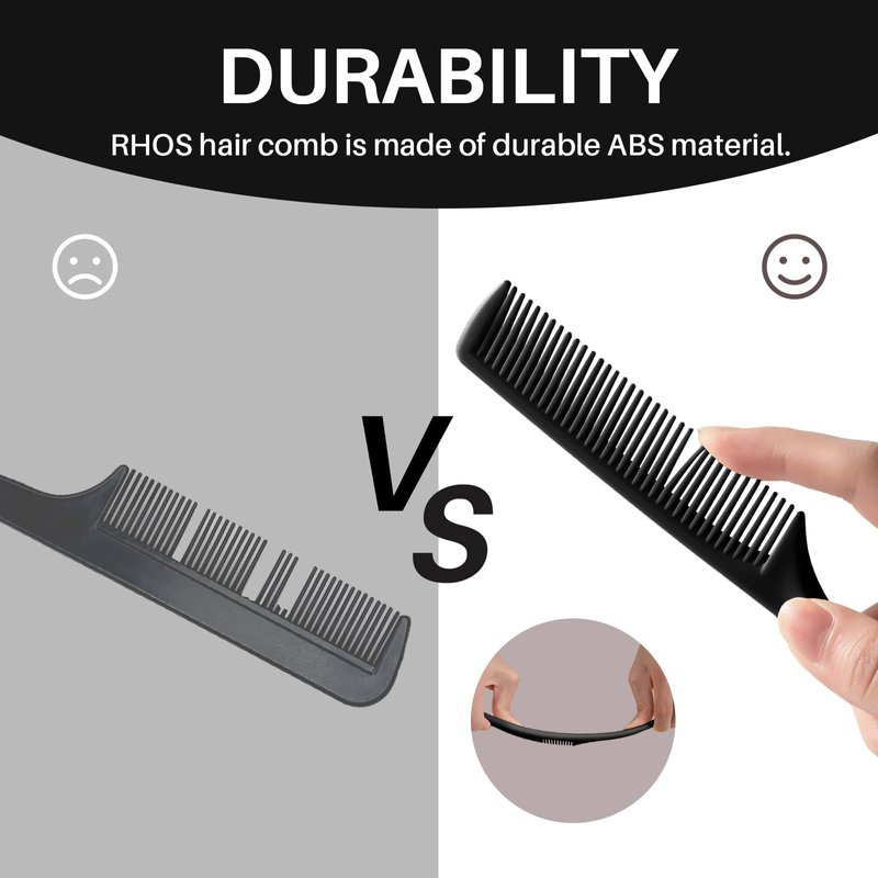 - 【Durable and Stable】RHOS Rat Tail Comb is made from ABS material,make the comb more sturdy.The high quality Fine Tooth Combs are not easily deformed or damaged and is lighter and more durable than ordinary hair combs.