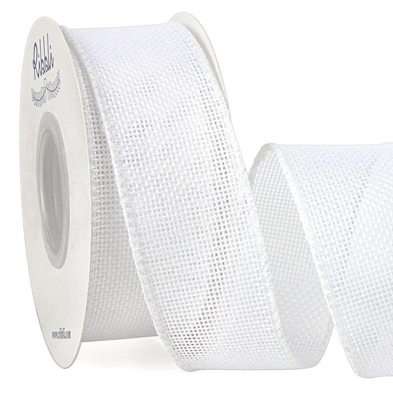 Ribbli White Burlap Wired Ribbon,1-1/2 Inch x 10 Yard,Cross Royal Burlap Wired Edge Ribbon for Big Bow,Wreath,Tree Decoration,Outdoor Decoration