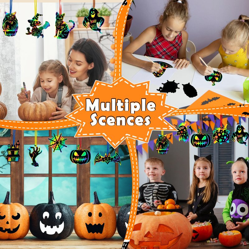 Halloween Scratch Paper Art Set Hanging Ornaments for Halloween Party Favors Activities