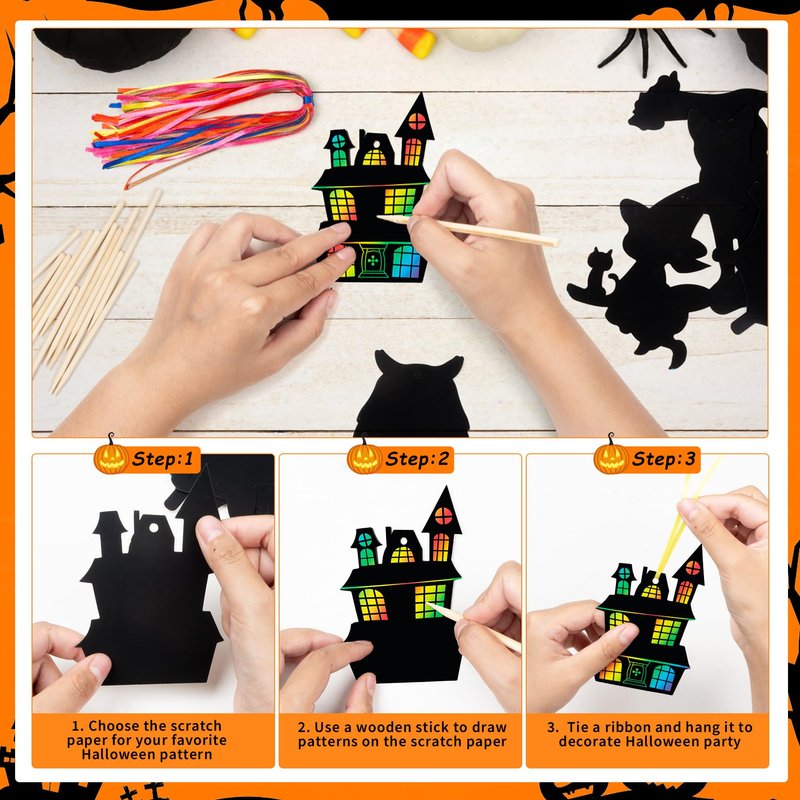 - Versatile Creations - Elevate your DIY projects by effortlessly weaving colorful strings through the holes, creating stunning Halloween ornaments or unique bookmarks. These scratch papers also make for a fantastic party activity, inspiring guests to unleash their creativity and craft their own handmade masterpieces.