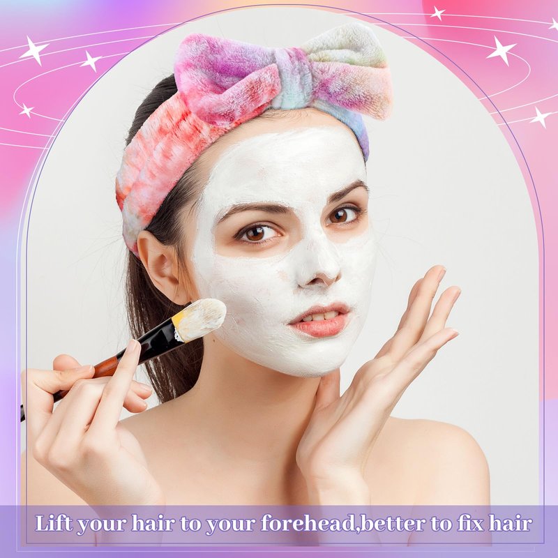 Riceshoot 24 Pieces Spa Headband Skincare Headband Microfiber Tie Dye Headband Elastic Bow Tie Makeup Headband for Washing Face Hair Wrap Accessories for Women Shower Gift