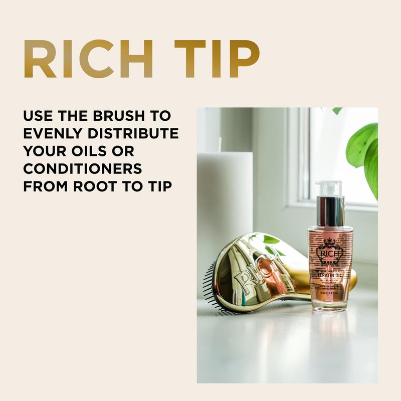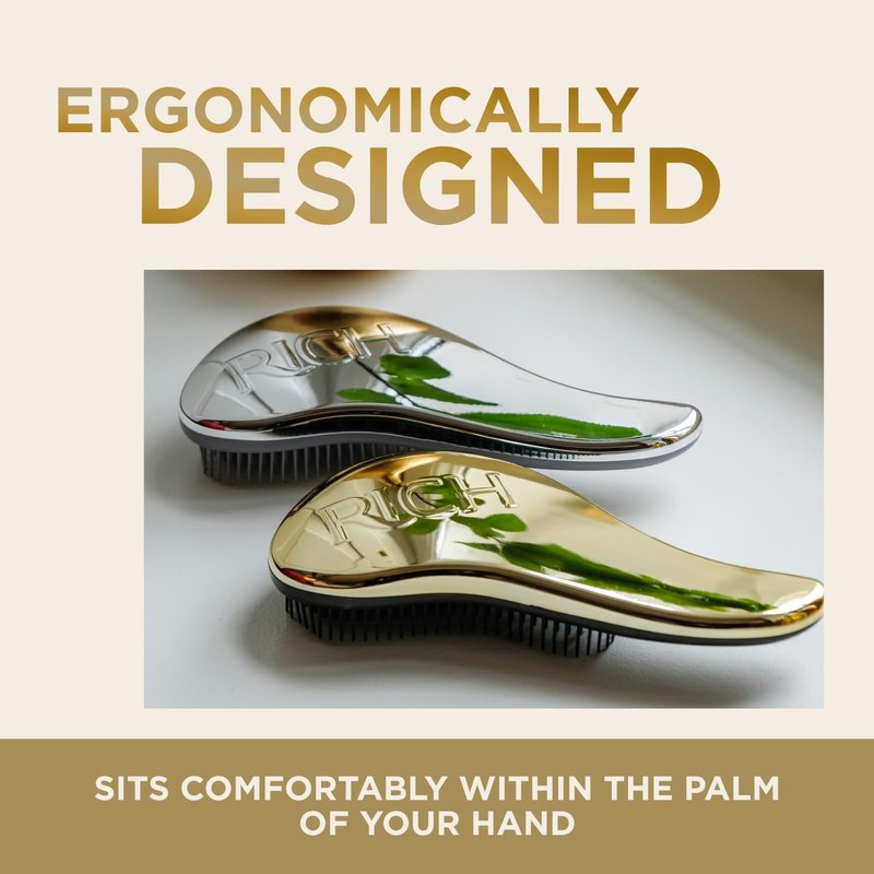 RICH Hair Care Golden Glamour Satin Touch Detangling Brush- Dry and Wet Hair Brush Detangler for All Hair Types - Keeps Hair Smooth, Anti-static, Reduces Frizz for Men, Women and Kids