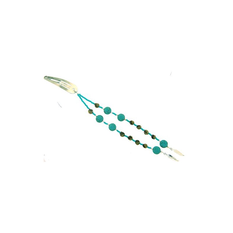 - Made In USA! Hair Clip would be described as a base metal hair barrette with two strands of large synthetic Man made seed beads and synthetic ghost beads with magnesite butterflies and silver plated feathers.