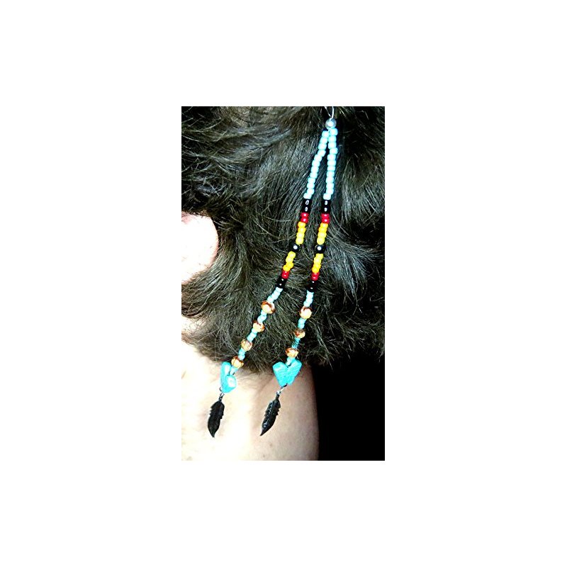 Hair Clip would be described as a base metal hair barrette with two strands of large synthetic Man made seed beads and synthetic ghost beads with magnesite butterflies and silver plated feathers. Comes with a Certificate of Authenticity