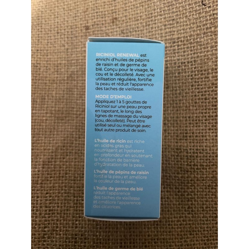 Riciniol Renewal is enriched with grapeseed and wheat germ oils. It is intended for the face, neck, and décolleté.