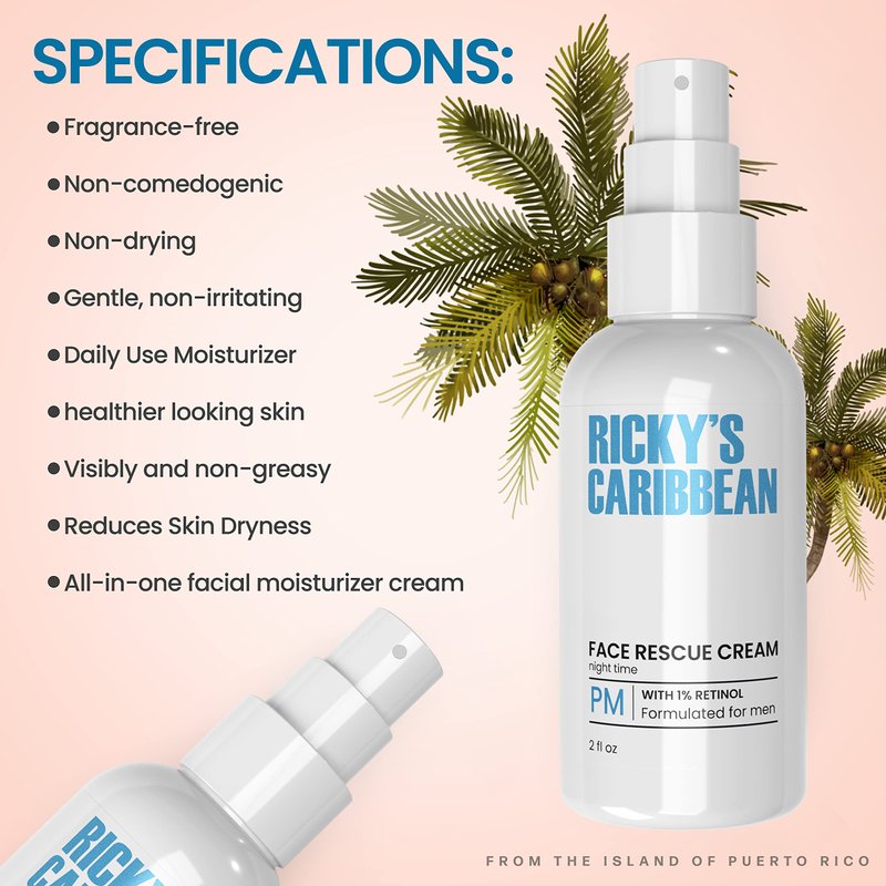 - π SKINCARE FOR MEN: From the island of Puerto Rico using Natural and Organic ingredients to help eliminate skin imperfections. Scent free moisturizer cream helps lock in moisture to help restore your skin to its youthful brilliance. Use RICKYβS PM with retinol as a night time skin remedy to help correct and improve your skin.