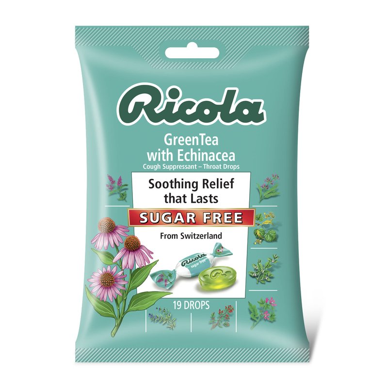 Ricola Sugar Free Green Tea with Echinacea Cough Suppressant Throat Drops, 19ct Bag
