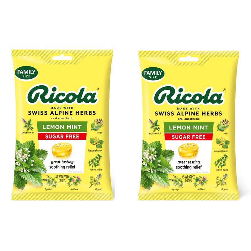 Ricola Sugar Free Lemon Mint Herbal Cough Suppressant Throat Drops, 45ct Bag (Pack of 2)