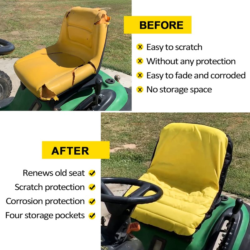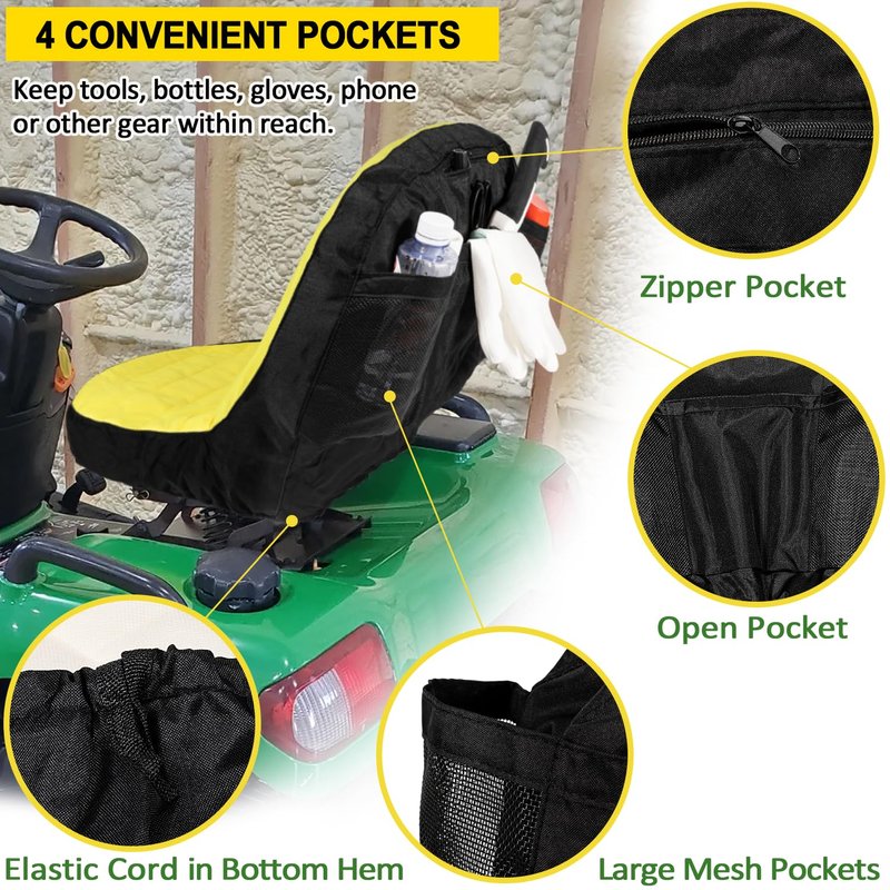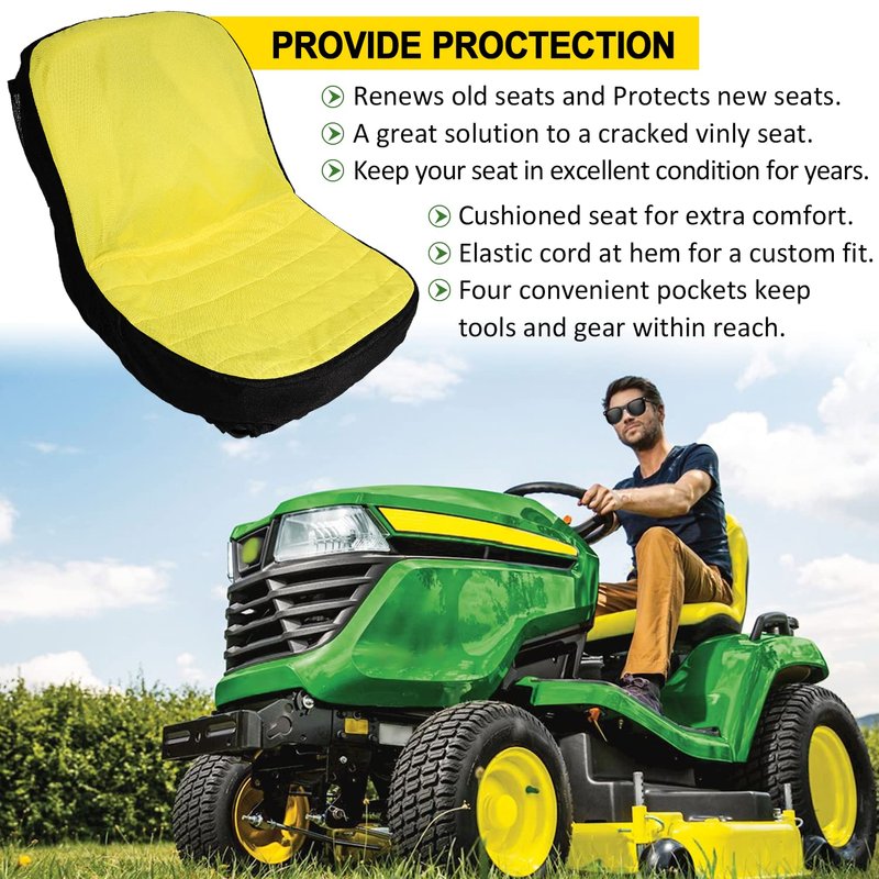 Riding Lawn Mower Cushioned Seat Cover LP92334 for John Deere Mower Tractor & Gator Weatherproof Seats up to 18" High Oxford 300D Fabric with Convenie