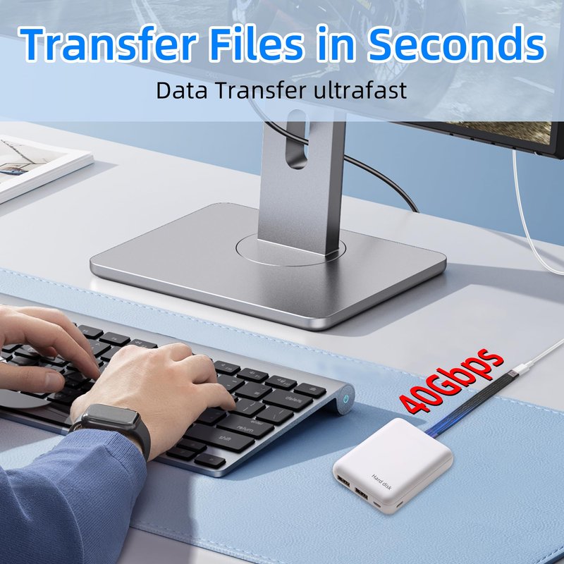Maximum transfer speed is 40Gbps, suitable for connecting Type C SSD or HDD for fast file transfer.