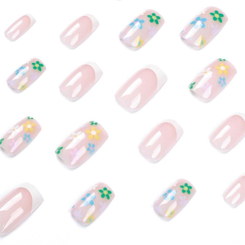 RikView French Tip Press on Nails Medium Acrylic Nails White Nails with Flowers Design Square Fake Nails