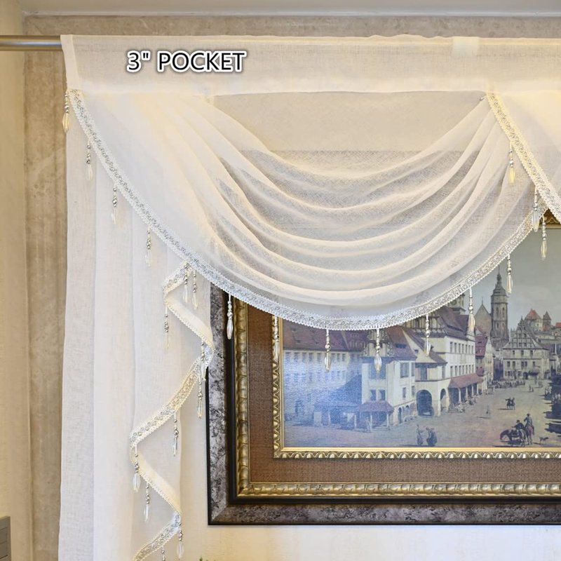 French Romantic Sheer Waterfall Swag Valance for Living Room Bedroom Window Treatment