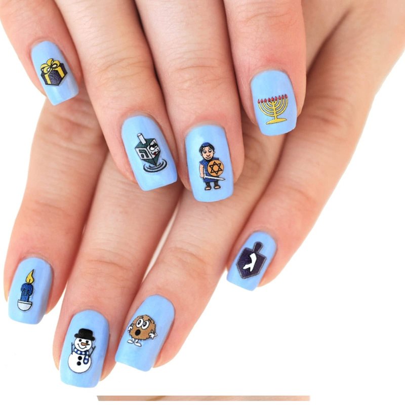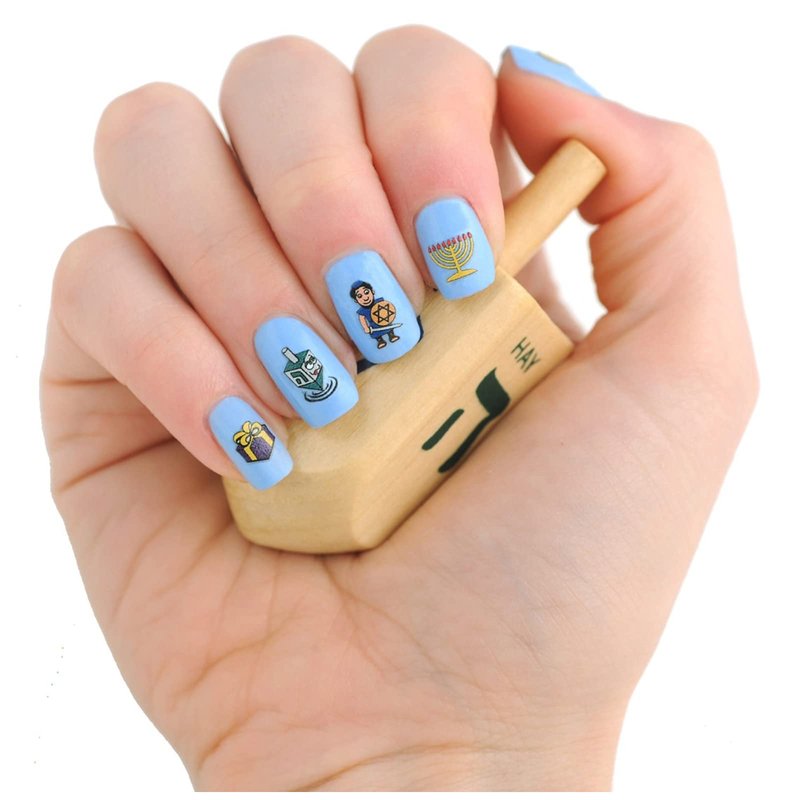 - Add some stylish glow to your nails this Hanukkah with our holiday nail decals. Our set of 49 nail decals are fun, festive and easy to apply. They look great on any color polish and last up to 10 days without chipping or peeling. Just apply it like regular nail polish, file off the excess and top them off with a coat of clear polish. Give your nails the gift of hanukkah this season.