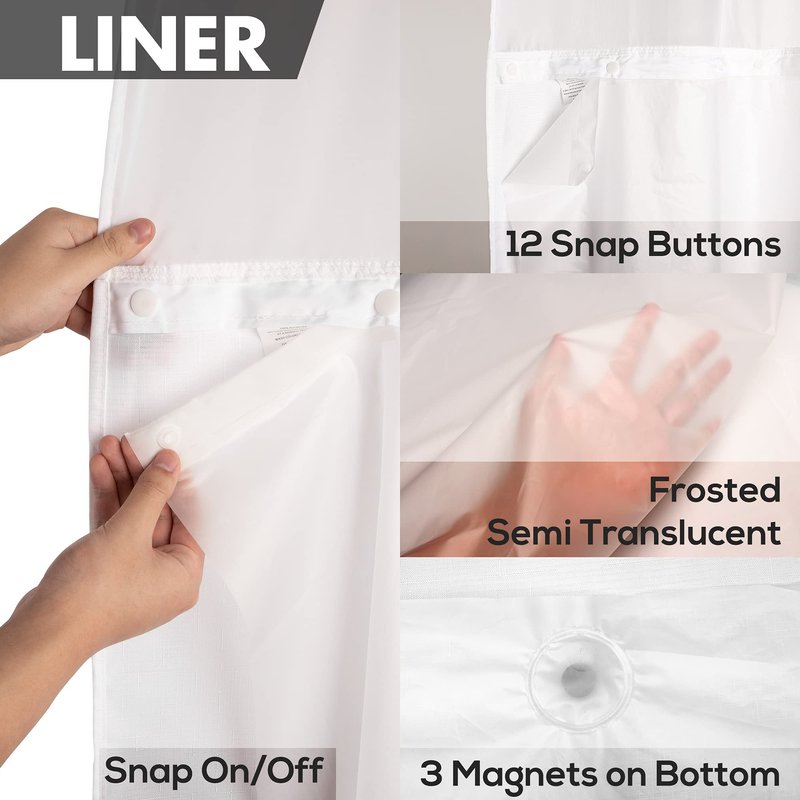 River Dream Waterproof PEVA Snap-in Shower Curtain Liner Replacement: No Hook Shower Curtain Liner Removable to Attach and Snap On/Off, Frost, 70x54