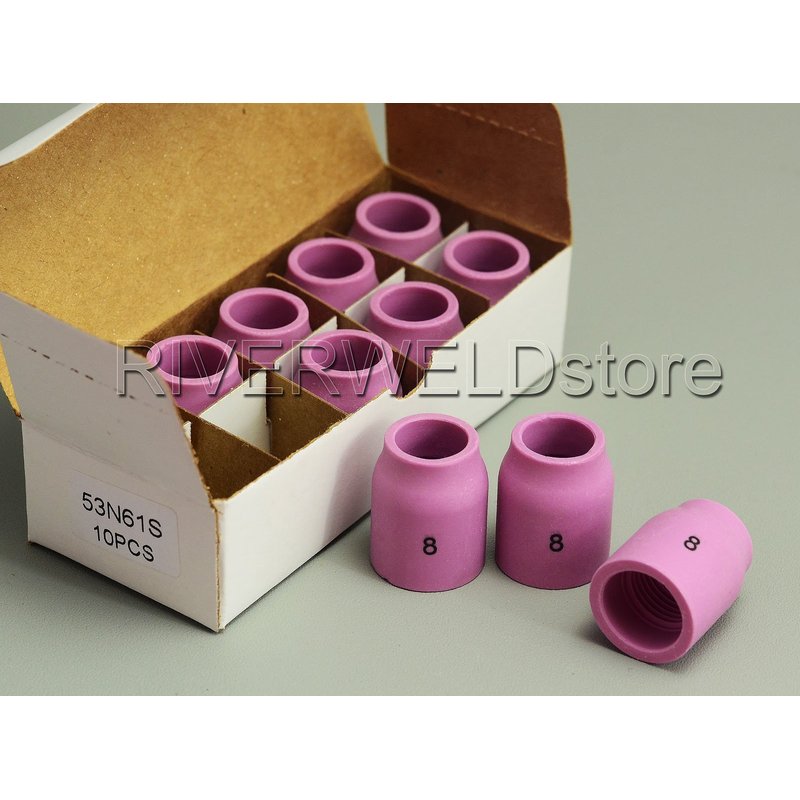 RIVERWELD TIG Gas Lens Alumina Nozzle Ceramic Cup 53N61S (#8 1/2") Fit PTA DB SR WP 9 17 18 20 25 26 TIG Welding Torch 10pk