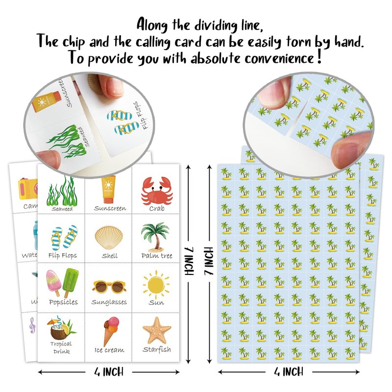 RLCNOT Beach Bingo Game, 24 Players Bingo Game, for Teenager Summer Beach Party Bridal Shower Birthday Party, Hiking, Trip Family Holiday Party, Reception Activity Supplies - 009