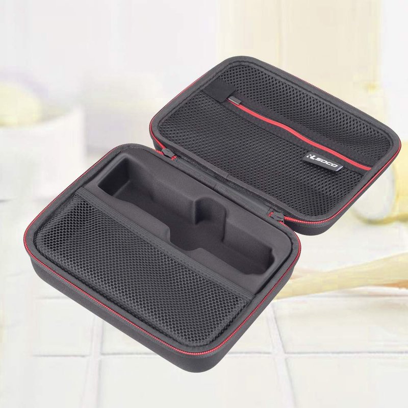 - ♬Fine Design -- The bottom is divided into 2 compartments and mould into shapes , which can separately keep the shaver and accessories well organized.(★The bottom molded supporting can also be removed to hold other products.★)There is an half-open mesh pocket to keep the charger and replacement trimmer heads not going out easily and make them stable.