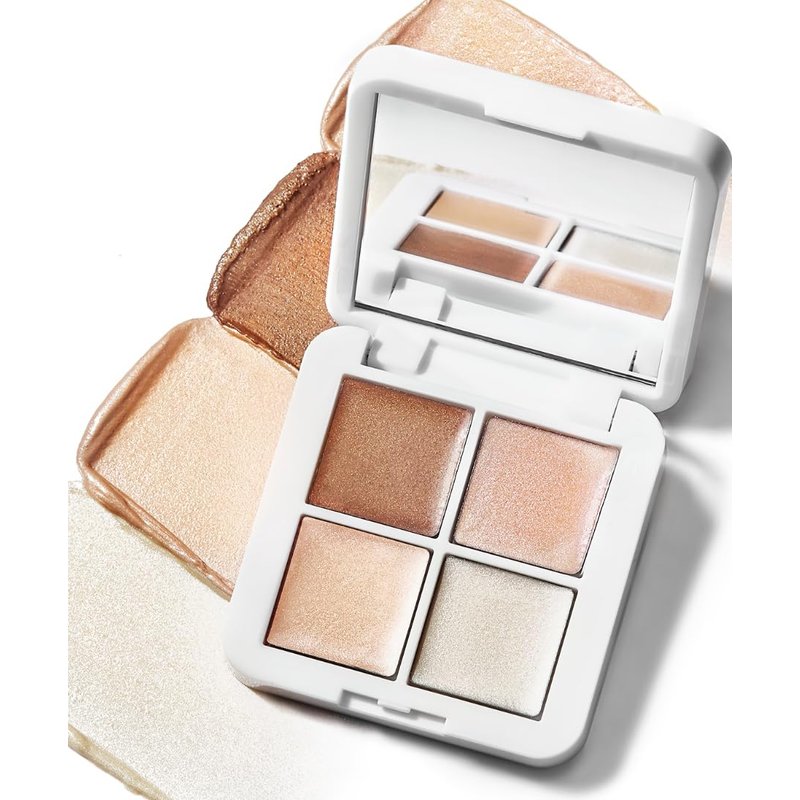 RMS Beauty Glow Quad Mini - Makeup Palette, Cream Highlighter Makeup, Blush Palette, Cheek Lip Tint, Highlight Makeup, Face Palette Makeup All in One