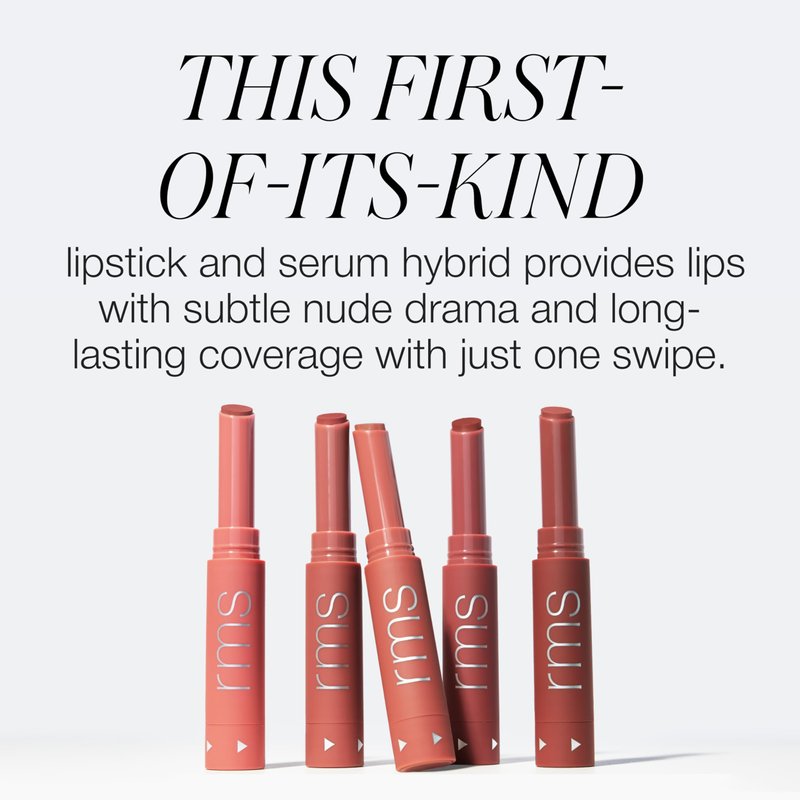 - This first-of-its-kind lipstick, serum hybrid provides lips with a subtle nude drama and long-lasting coverage with just one swipe.