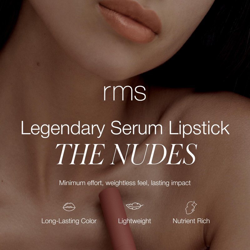 - From Rose-Marie: “You’ve been requesting nude shades of Legendary Serum Lipstick, and how could I not listen? These new shades add to the lip love and bring a subtle, more natural look. They are inspired by ‘legends’ I love who dare to show a little skin. You’ll be addicted.”
