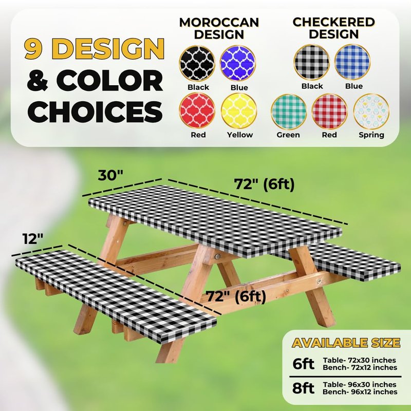 Classic Checkered Design: We have created our 3 piece picnic table cover set in a classic checkered gingham design for those of you who love the traditional picnic feel and style.