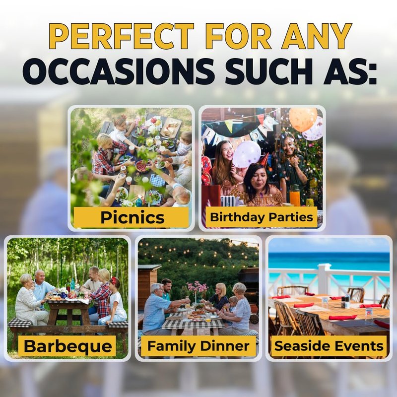 Outdoor Fun: Dress up your patio furniture and seating areas for the outdoor cooking gatherings with the picnic table covers with elastic Edges.