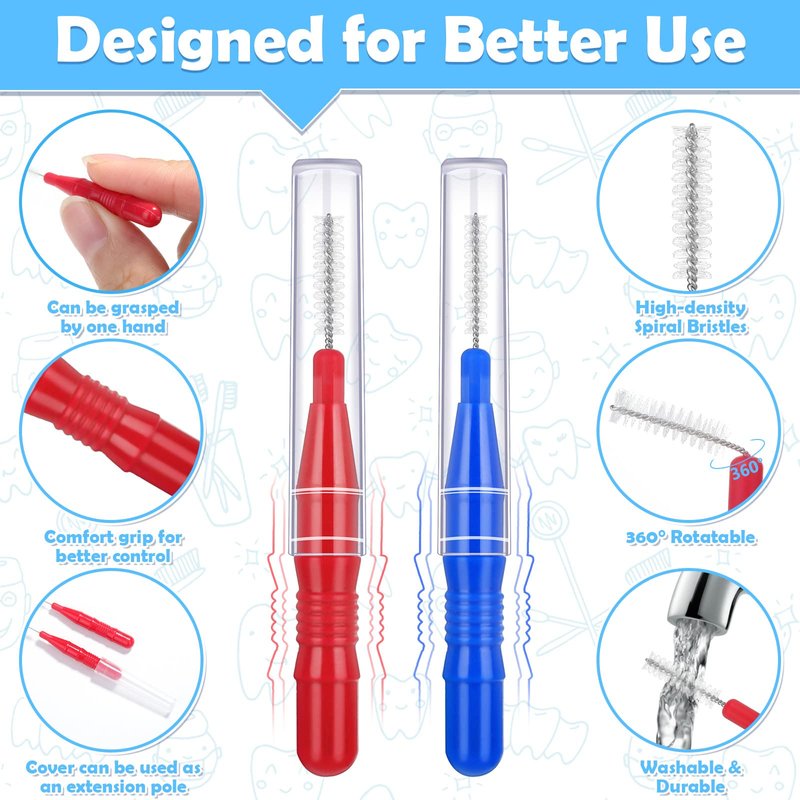 - 【120PCS Value Pack】You will get 120 interdental brushes in blue and red colors, each color represents one size. The brushes heads of 2 sizes are suitable for different gaps between teeth. Whether you have narrow or wide gaps between your teeth, uneven teeth, or crowded teeth, you can find the right size. There are sufficient numbers to meet your long-term daily use needs.