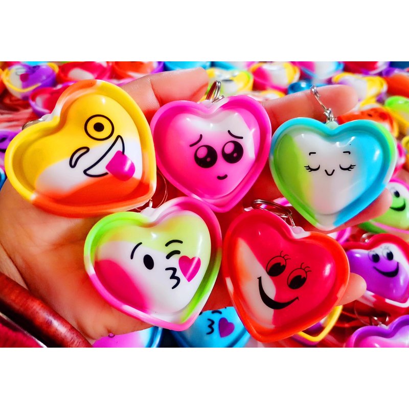 - 2,Made of silicone,package included:100 packs heart expression mini pop key chains,Random color to send