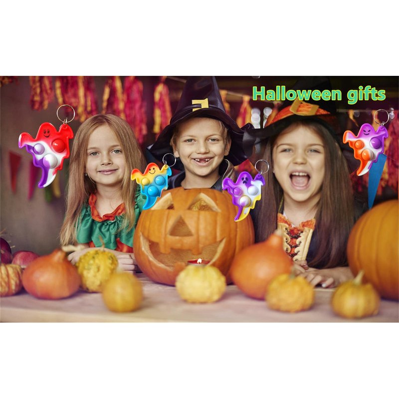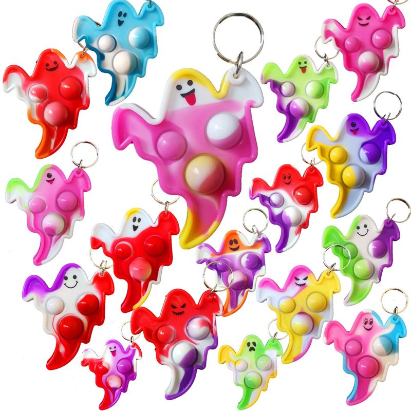 - 2,Made of silicone,package included:30 pcs Halloween Ghost mini pop key chains,Random color to send