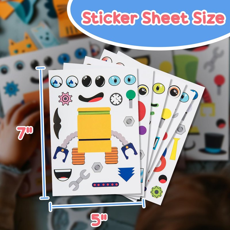 - KID-FRIENDLY DESIGN: Designed with little hands in mind! Our sticker craft supplies for kids are designed for young creators aged 3 and above. The easy-to-peel design ensures frustration-free sticker application. Our sticker sheets for kids will foster independence in artistic exploration as they bring their robot visions to life, one sticker at a time.
