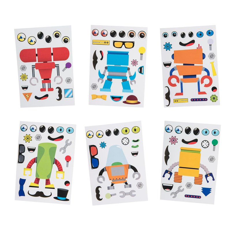 - CREATE YOUR IMAGINATION: Immerse your child in a world of robotic marvels. With 6 captivating robot designs, spread across 6 sheets per design, our collection of 36 robot sticker sheets for kids provides the perfect canvas for crafting a whole menagerie of creative possibilities. Let your kid’s imagination flow as they peel, stick, and create from vast options